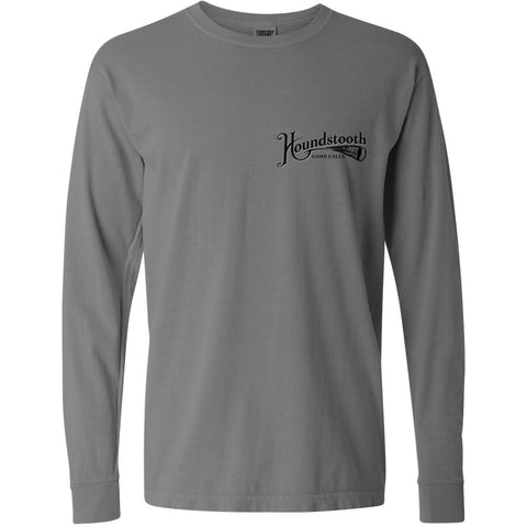 Printed on a premium Comfort Colors long sleeve in Graphite, this shirt has that soft, broken-in feel from the first wear with the durability to hold up through long days in the woods or cool evenings at camp. The front keeps it clean with a simple Houndstooth Game Calls logo, making it just as easy to wear in town as it is in the field.
