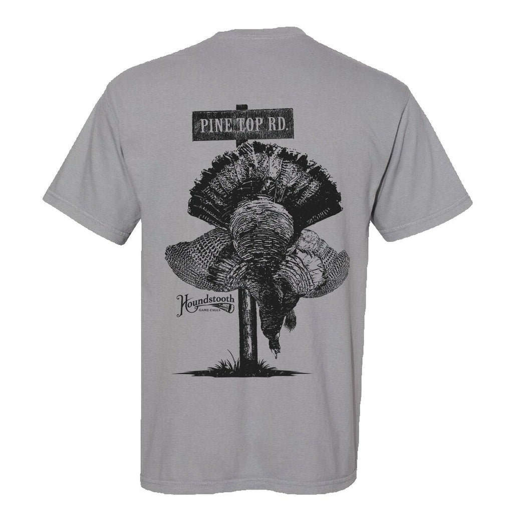 The back graphic features a bold strutting gobbler posted up beneath the Pine Top Rd sign, a reminder that some roads earn a reputation for a reason. Around here, Pine Top is known for birds that do not give it up easy, and hunters who would not have it any other way.